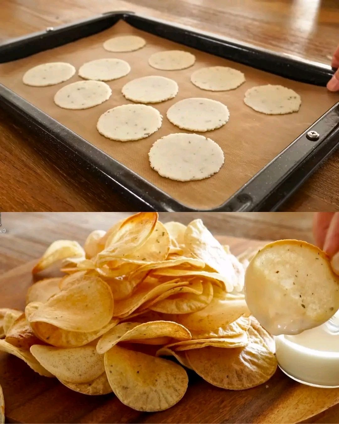 Ultra Crispy! Not Fried! Perfect Garlic Potato Chips with Garlic Cheese Sauce